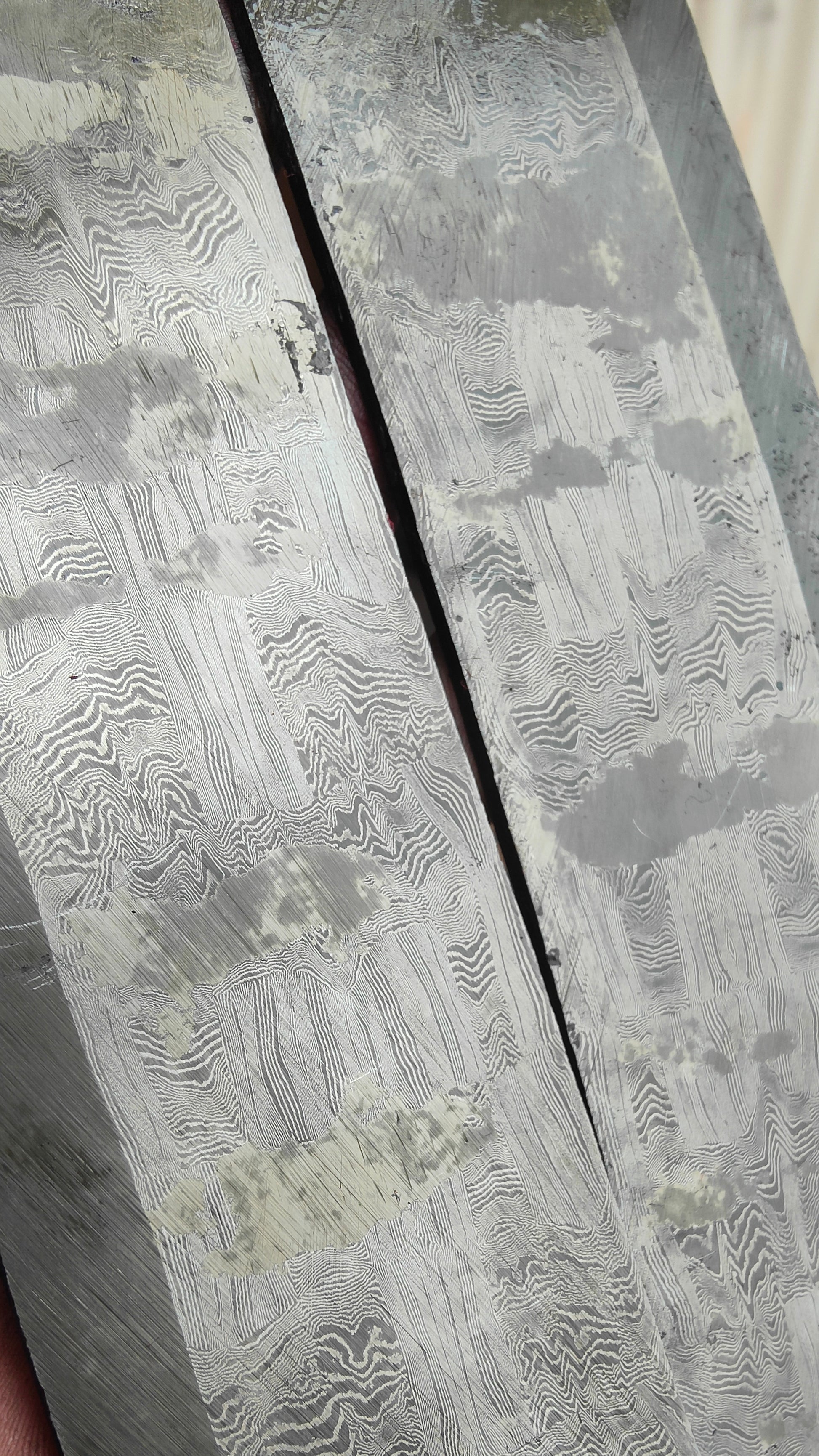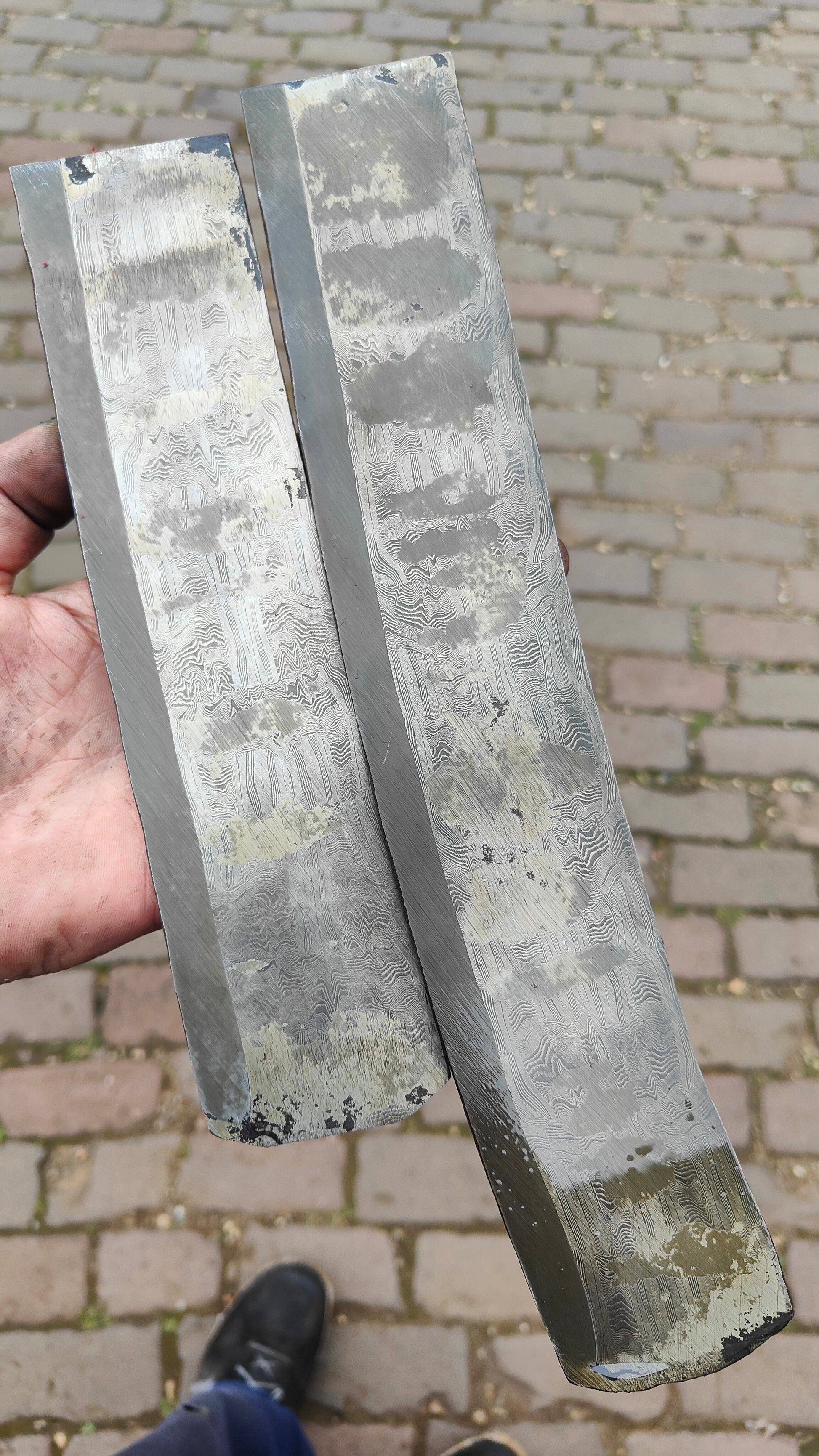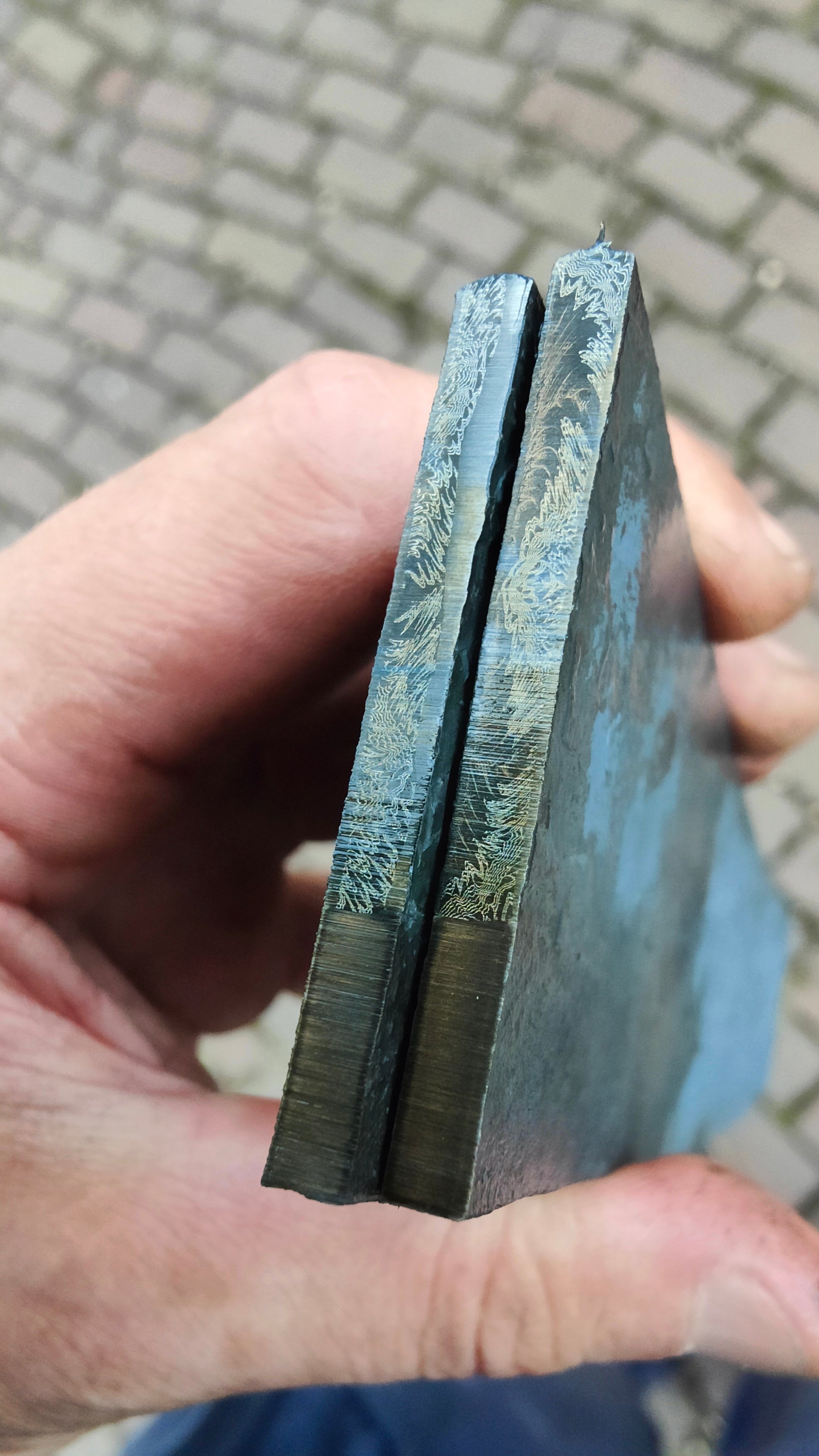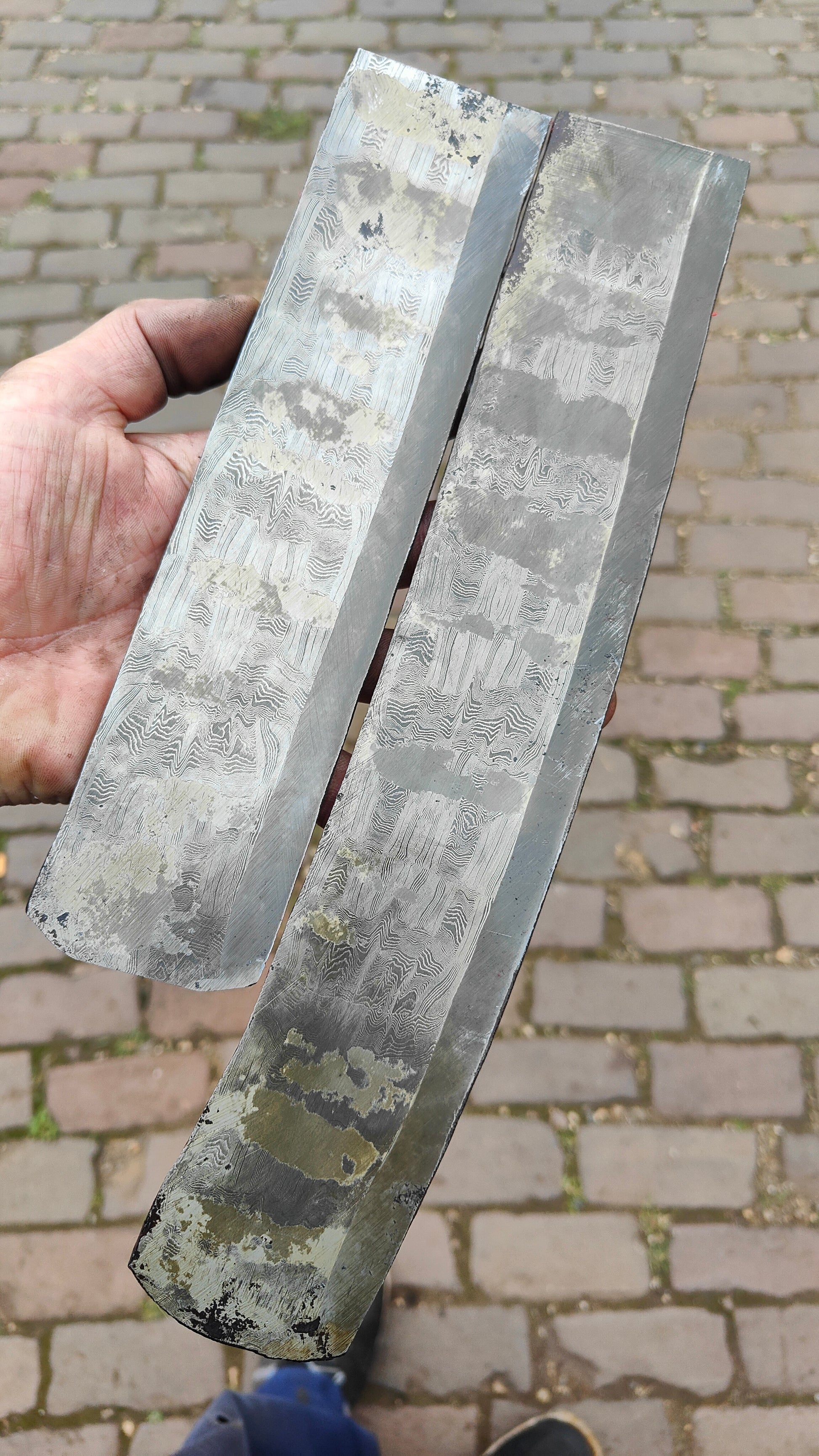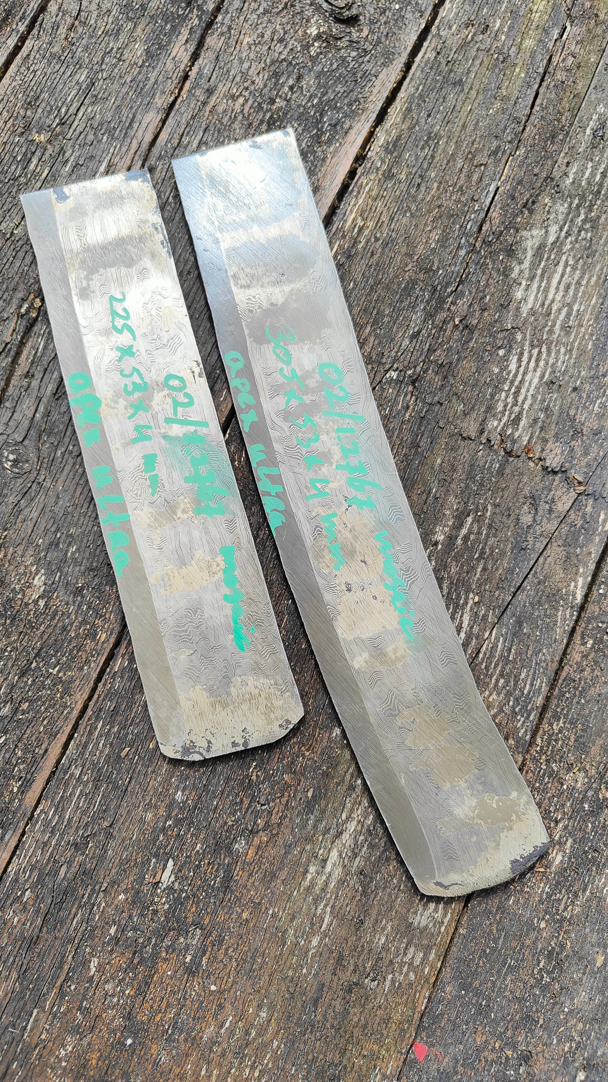 2 piece set forge welded apex ultra edge onto a wide bar of 02/1.2767 basket weave mosaic